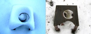Øyet som ser. Det er akkurat det. Som den vinterelskeren jeg er ser jeg med gru på nedsmeltinga. Både i Japan og her. Desverre er konsekvensene i Japan så mye, mye større. Håper de klarer seg. Men i min fredfulle lille verden er det overgangen fra snø til vann som plager meg. Alt det hvite fine forsvinner. Det som gjør naturen enklere og stillere. Solen gjør at en provisorisk utedo,