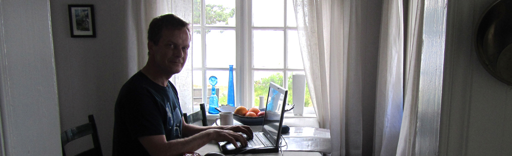 slike dobbelfylleslag lenger. Men det er gøy. Det er bedre enn facebook. Det er bedre å se folk. Det er bedre å treffe venner Se ansiktene du snakker til. I går traff jeg mange jeg kjenner. Paul og Mette, gamle venner, og kunde fra Oslo på sommer besøk, og kunde fra Brasil på ferie i Kristiansand, og ny kunde fra Korsvik og oljo. Traff også noen fulle trøndere og en sjanglete forvirret bergenser uten talebegrensninger. Det er dagen derpå og jeg sitter aleine og skriver. Min kjære sover ennå. Og det at ingen ringer på kommer rett og slett av at vi ikke har ringklokke.