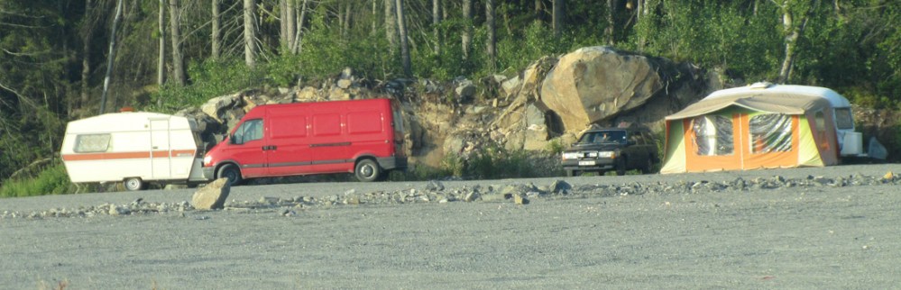 Like ved “Avenyen” * på i Sørlandsparken ligger en stor grusplass, Campingplass. Tidvis er det helikopter der som heldigvis blåser vekk det som finnes av gresspollen samt en del av støvet. Campingturistene som har funnet frem til denne oasen kan ikke ha store krav til havutsikt eller fasiliteter av noe som helst slag. Det er etter mitt syn helt sannsynlig at det er gresspollenallergiklubben som samles her.