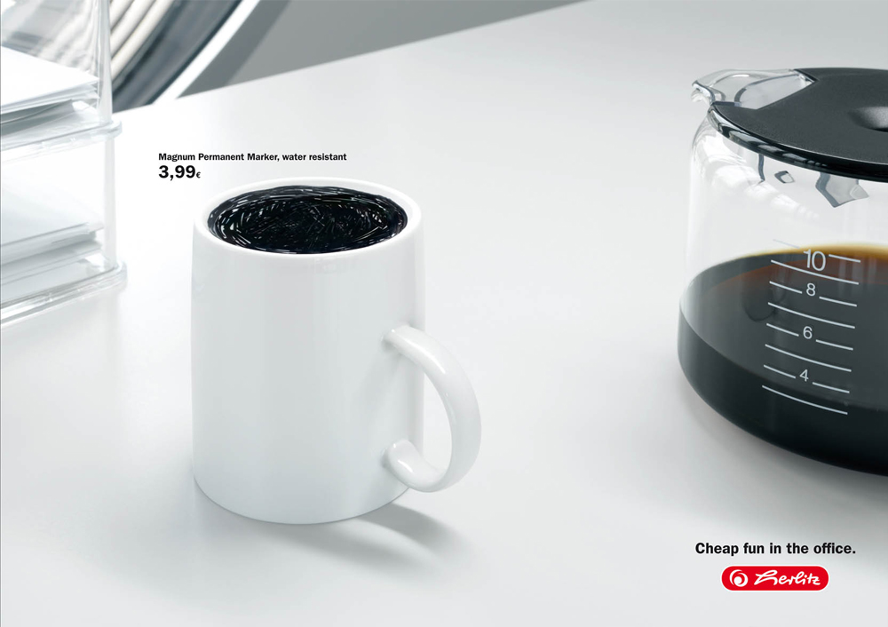 Leverandøren av kontorrekvisita har turt. De har tatt sjansen på å la sine produkter bli promotert ved at de benyttes på en “uskikkelig” måte. Det står respekt av det. Få oppdragsgivere tenker slik.