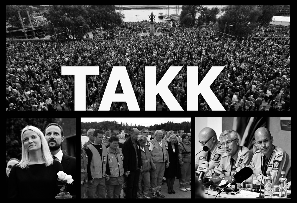når det først kom var det godt at vi er omgitt av folk som vet hva de gjør. Som gjør de rette tingene. Som gjør at såret ikke ligger åpent. Som sørger for at såret ikke blir infisert med bakterier. Som sørger for at såret ikke blir betent. Takk til disse menneskene som holder hverandre i hendene og holder alle oss andre oppe. Takk til kongefamilien. Takk til Jens Stoltenberg og hans stab. Takk til politi og røde kors. Takk til alle som holdt fakkel og rose. Takk til alle dere som hjelper å lege mitt lille skrubbsår.