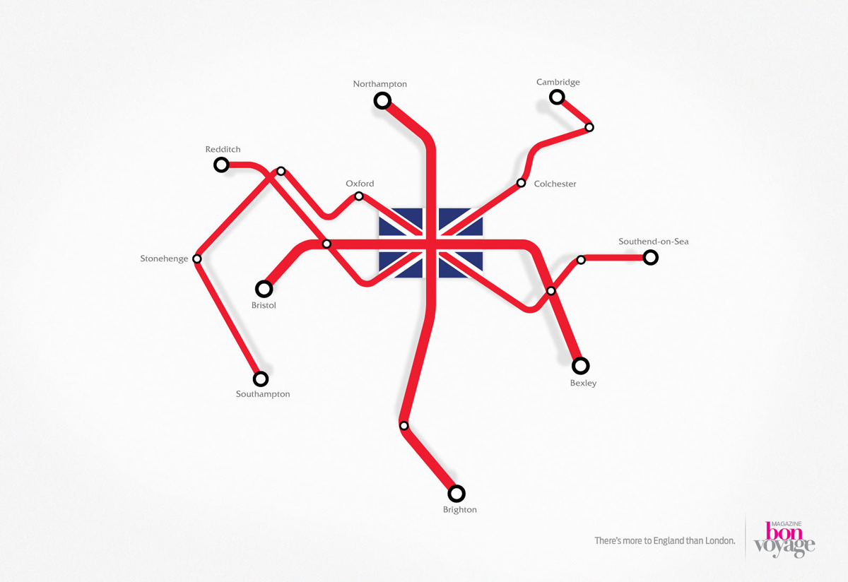 Reklamebyrået LaBase i Mexico har hatt oppgaven med å selge England utenfor London. De gjør det på en elegant måte. Enkel visualisering. London er synonymt med England for mange av oss dustete turister. Men England er så mye mer, og det klarer denne annonsen å formidle. Hill, hill til art director Luis Amador i Mexico.