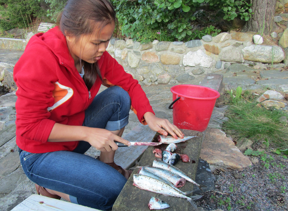 eg. Testperioden varte ikke lenge. Vi kan egentlig krysse makrell av på listen over ting som smaker verre enn forventet ved rå inntakelse. Men det er forsøkt. Svigerinne Wanida tok ansvar og gjorde makrellen klar på tradisjonelt vis.