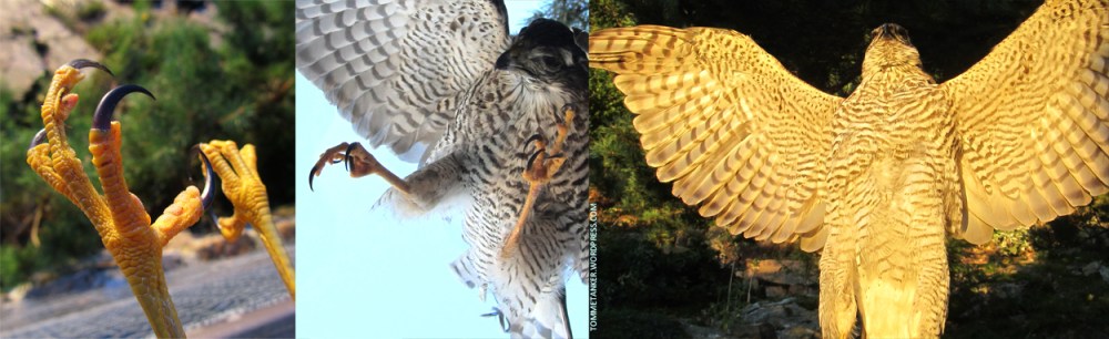 noe å spise. Like ved hytta bor et par spurvehauker. Disse flygningenes mestre. Små og kjappe. Med korte, brede vinger er de bygd for å manøvrere i tett skog på jakt etter oppfeita småspurv.