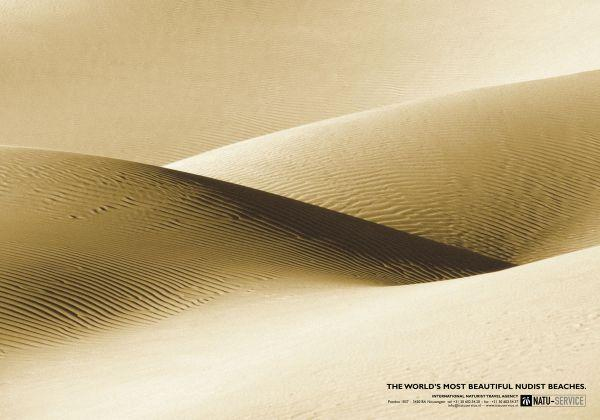 Fra samme reklamebyrå kommer en annonse for nudiststrand. Viser nakenhet uten å vise nakenhet. Nice.