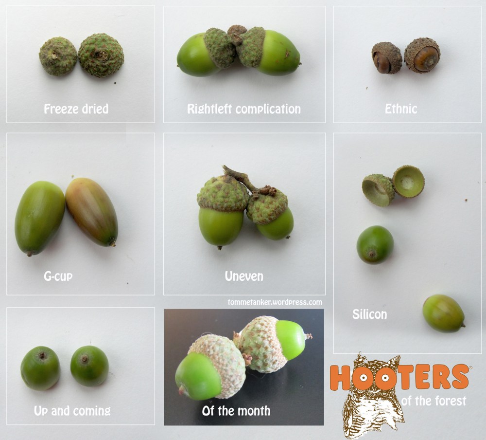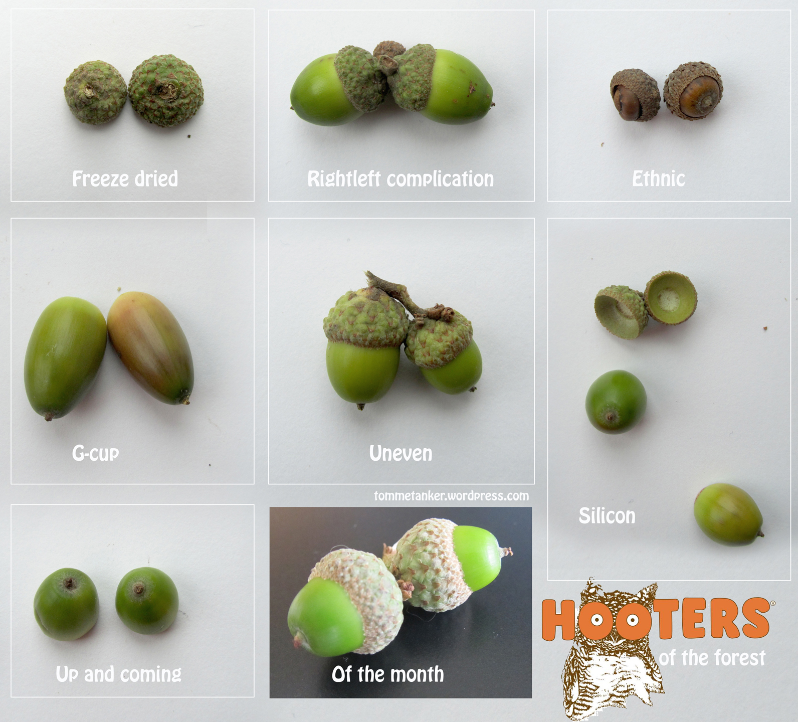 Puppers. Hooters. Man kan leve uten, men for et liv. Spesielt for kvinner. Som den ensomme skogens mann jeg er legger jeg merke til uvesentligheter som biologiens evolusjon har frembragt. Det har gått opp for meg nå hvorfor ekorn er så glad i nøtter. Det minner dem rett og slett om pupper. Hooters konseptet er like genialt som enkelt. Restaurantkjede hvor servitørene har store presentable pupper . Maten betyr lite. De spiller på oss enkle menns limiterte hjernefrekvens. Enkelt og greit. Lurer på hva motstykket til Hooters kjeden heter? Hmmm. Kanskje Nuts?