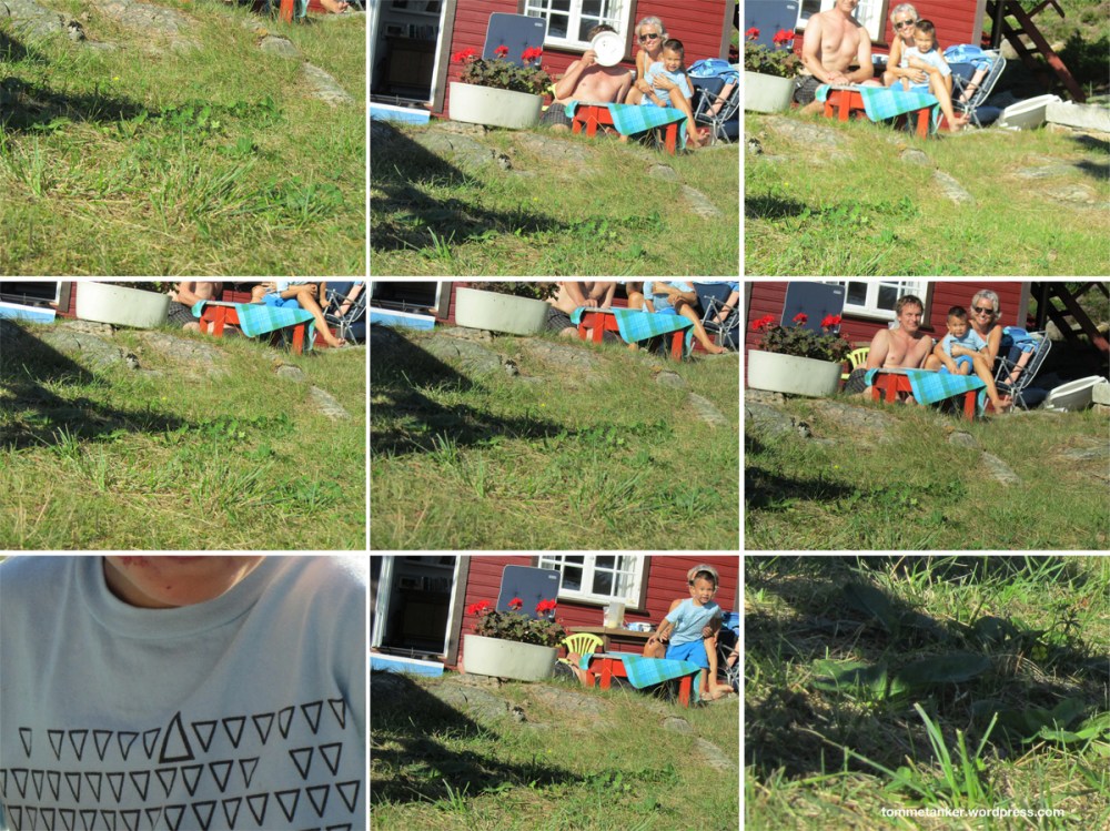 jeg inngående utreder om avstander og blenderåpning. Denne dagen var det selvutløserens uante tilbøyeligheter som stod på timeplanen. Det er bortimot ufattelig for en liten gutt at du kan trykke ned en knapp, for så å løpe i posisjon, og KNIPS, så blir bildet tatt. Om han ikke skjønte forklaringen min, så skjønte han prinsippet. Og den utførende øvelsen ble satt i gang. Timing, knipsing, løping og sikting. Timing, knipsing, løping og sikting. Timing, knipsing, løping og sikting. Timing, knipsing, løping og sikting. Timing, knipsing, løping og sikting. Timing, knipsing, løping og sikting. Timing, knipsing, løping og sikting. Timing, knipsing, løping og sikting.