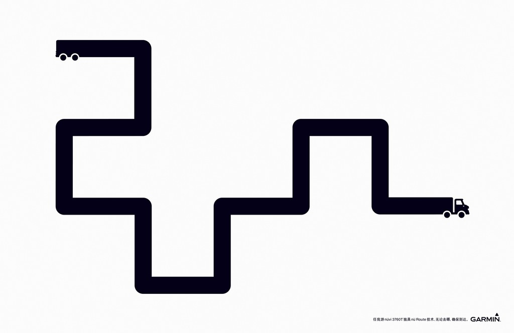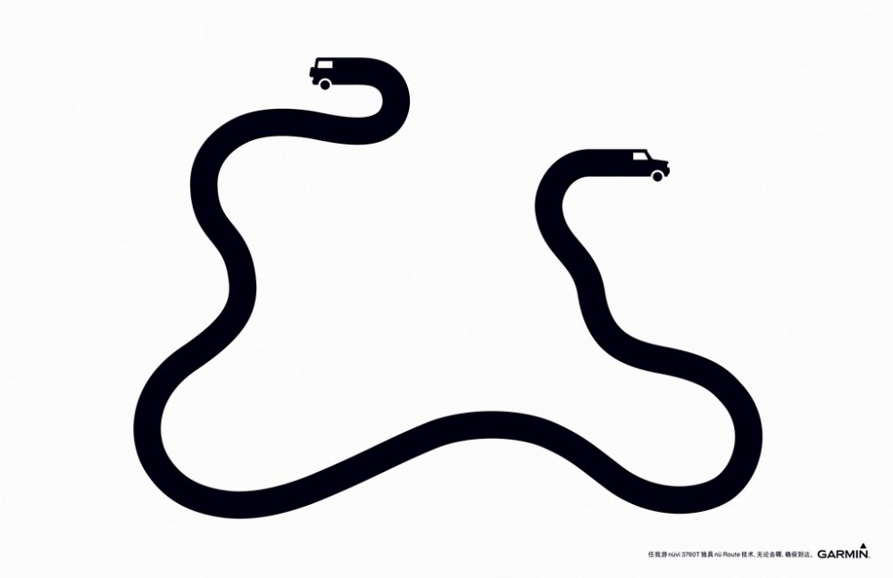 Uansett har jeg sansen for annonsene fra Ogilvy i Shanghai, China. Enkel visualisering av det å holde den stø kurs, uten bomturer.
