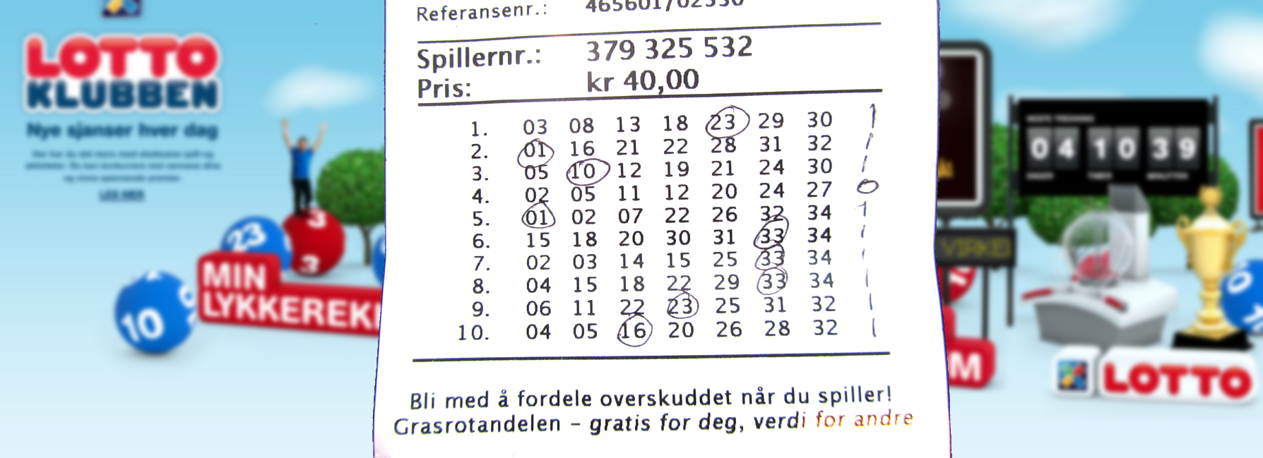 tykke igjen til å bli Lottovinner. Men jeg burde hatt premie. Så dårlig som dette er det vel bare Teite Tullingen Taperen Tufsen Tomm (The 5Ts) som kan gjøre det. Men som den ukuelige dusten av en optimist jeg er tipper jeg igjen til helga. Jeg har til og med stiftet eget idrettslag slik at jeg selv også får grasrotandelen. Og selvom jeg burde vært selvskreven med denne kupongen så får vel også Lottoklubben vente.
