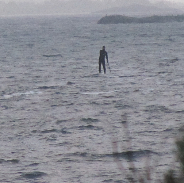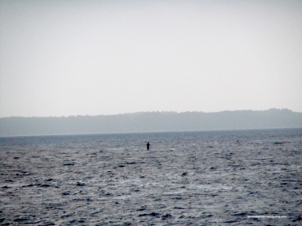Kommet helt fra Aust-Agder kanskje? Kanskje han har kommet vestfra hvor han ble innskrevet i Mandal. Vondt å vite for en som ikke har lest bibelen på ein stund. Så jeg satt meg ned for å vente til han ville stige opp på svabergene foran hytta. Jeg venta. Rask var ikke Jesus akkurat. Det tok tid. Men han kom jo nærmere og det var da jeg så det. Det vakke Jesus. Ikke engang Matteus, og kanskje ikke engang en troende. Det var en padler som ikke gadd å sette seg.