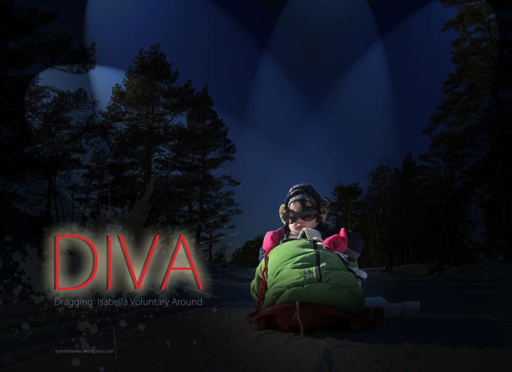 Rihanna, Madonna, Mariah Carey, Lady Gaga and Beyonce ,- you have a problem. Not to mention Houston. . . . A contender has been born. She’s born to fame and fortune and winter landscapes. She’s two, and she knows it, and enjoys it. Allready she is taking advantage of stupid surrounding family twat members. Acting out all her postential as a fragile child she makes me a puppet. Just as Madonna, and late Whitney Houston she has her list of demands when moving about outside, as a DIVA should have.. Obey or get fired. And I am her enginge and tourguide and brake and handyman. But I love it. And contrary to the somewhat negative meaning of todays pop stars. My definition of Diva is: DRAGGING ISABELLA VOLUNTARY AROUND – DIVA.