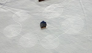Sonja Hinrichsen. Med truger på beina, nysnø og innsatsvilje har hun laget fantastisk kunst for fuglene. Og nå også for oss. Etter en ide som kom i 2009 i Colorado, har hun på flere steder laget gigantiske mønstre i snøen. Rett og slett fansinerende. Hill, hill. Og takk til Supansa som viste meg sidene. Se video:
