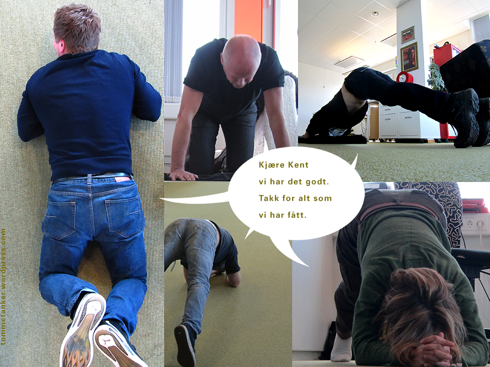 Jeg liker orden og struktur på arbeidsplassen. En klar og ubestridt leder. Demokratisk valgt skal vite, men fast og sikker og stø på hånden. Og slik har vi det hos oss. En som er som en far. En trygg kaptein til å styre skuta. Faste rutiner og rapporteringssystemer holder oss på “hugget”. Uten dette ville alt falt i grus. Vi hadde virret rundt som dessillusjonerte tomater uten retningssans på vei inn i ketchupflaska. Vi hadde fått nerveproblemer, tarmslyng og skiveutglidning. Nei, Det hadde vært fælt. Men heldigvis. Heldigvis har vi vår,- oh store far i førersetet. Daglig ledet.