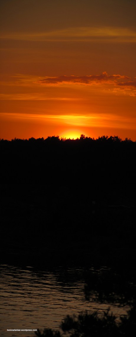 Da kan også Tomm sine tomme tanker stilne. Jeg bare står og ser. Eller sitter. Kanskje på brygga. Kanskje på terassen. Men aller helst på svabergene foran hytta. Med en solskinnsdags behagelig lunk innabords er svaberget et godt underlag for stillhet. Varm i rumpa, stille i hodet. Bare sitte å se, til sola er borte. Det er så stille, det er så vakkert. Det er så godt.