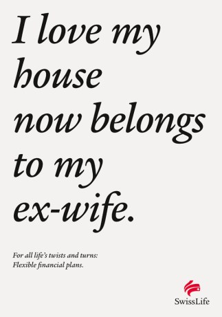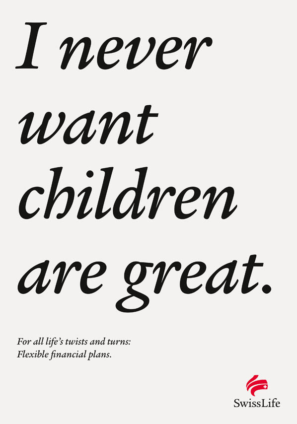 Spillmann/Felser/Leo Burnett i Sveits har laget denne fantastiske annonse serien. Enkelt men tankevekkende. Et mesterverk fra en tekstforfatter. Swiss Life er et forsikringsselskap og viser her frem livets buktninger og bråstopp og helomvendinger. Noe som kan være nyttig å forberede seg til. All ære og Hill, hill til tekstforfatteren her.