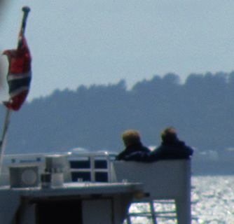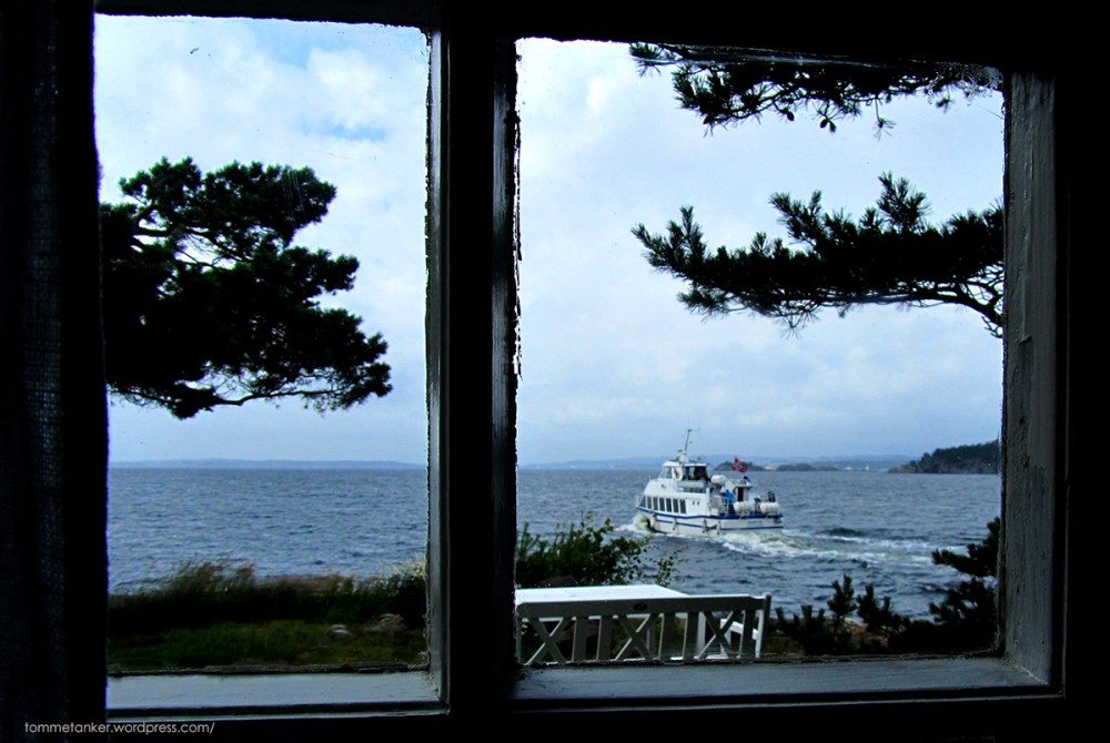 Det hender de vinker til oss, og vi vinker tilbake. I vinduene under dekk klemmer neser seg mot duggete vinduer for å få et glimt av vår vakre skjærgård. Maarten svikter ikke. Maarten tar ansvar og viser frem vår flotte lille stribe av knatter, måger, maneider og kyst. Uansett vær og dårlige tyske og italienske og franske og japanske knær. Pensjonister fra alle verdenshjørner titter på vårt lille forblåste krypinn og vi titter tilbake. Et lite felles øyeblikk. Takk Maarten.