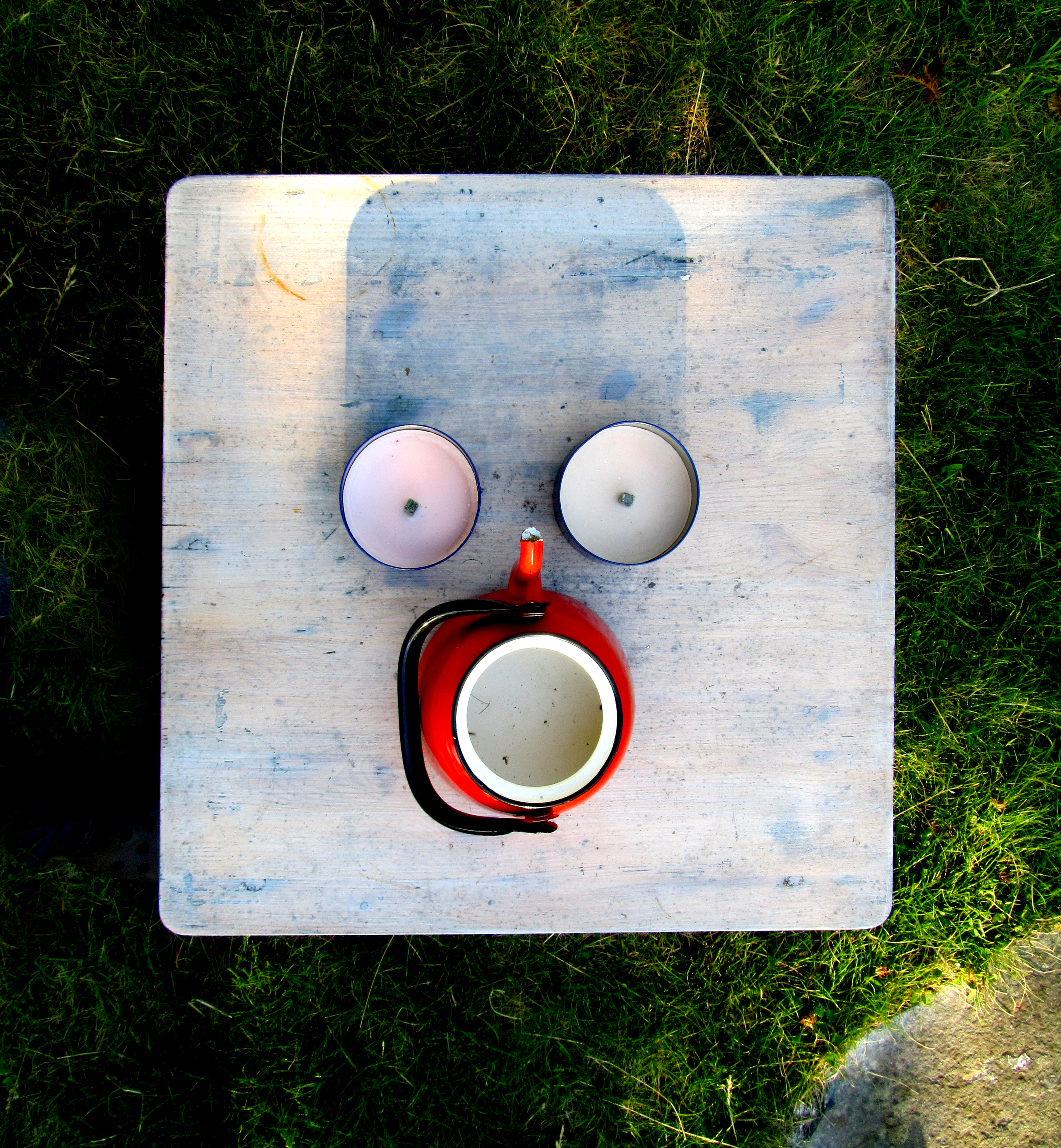 Opp a senga, på me buksa, vekk me gardina. REIN! De reinår i da. Drøpp, drøpp. Men æ må tisse, æ må ud. Ingen innedo på hytta. D æ sånn de ska være på hytta. Enten ud, eller å tisse i en krog i den knøttlille stua. Men da blir kona så sur, så æ går ud. Ud i reine. Kniber ijen øyan å det som trengs me sikte på udedoen der borte. Ti medårs knallhar spurt å æ æ ude a reine å inne på doen. Doen me et vindu mod have. Æ jørr mitt mens mågane restår sæ på blaude svaberg. Fornøyd me mitt fornødne løbår æ tebage. Å de æ da æ ser an. Mr. Fakkeltud. Han står på bore. Ettårladenskabår fra i går. Litt overraska over reine han åsså. Men han fikk mæ te å smile. Tilåme på en reinmorra på hytta. Å æ kan se Lonn i de fjærne. De hadde nok humra der borte åsså.