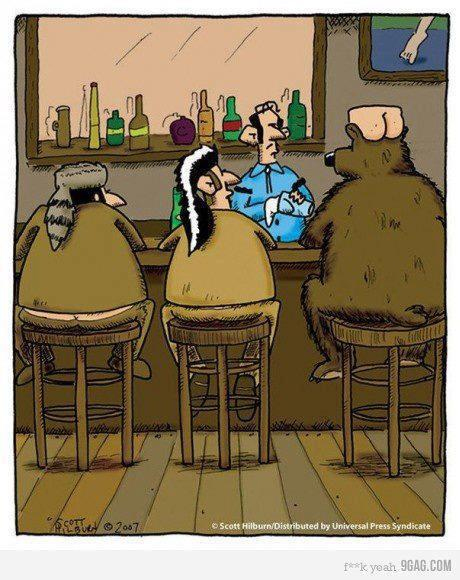 Den passet seg ikke for fella. Heisan og hopsan! Jegeren Tomm har vært på ferde igjen. Vår hårete lille uvenn har møtt sin sjebne. Minken er et lite, men voldsomt rovdyr som ikke hører hjemme i vår natur. Den er på svartelista til naturforvaltninga og kom til Norge først på 1920 tallet. Og den er min uvenn. Den spiser egg og fuglunger og sikkert en og annen katt og småbarnsfamilie og trikkekonduktør også. Og nå får den ikke feire jul igjen. 2 minker mindre i løpet av sommeren. Det minker. Men jeg kommer vel neppe til minkhimmelen. Jeg er ingen jeger og trofèer samler jeg ikke på, men jeg er tilhenger av balanse i naturen. Og den skaper vi. Balansen, og ubalansen. Tegneren, psykologen og dataprogrammereren Scott Hilburn har et poeng med sin lille “rute”.