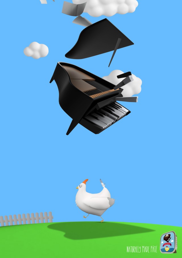 He, he. Det enkle er det beste. Moooooost intetanende stupid høne kan ikke bli mer most, knust, stampa og stappa. Ei heller kan den smake mer som en sommermelodi enn om den blir most av et fallende piano. Hill, hill.