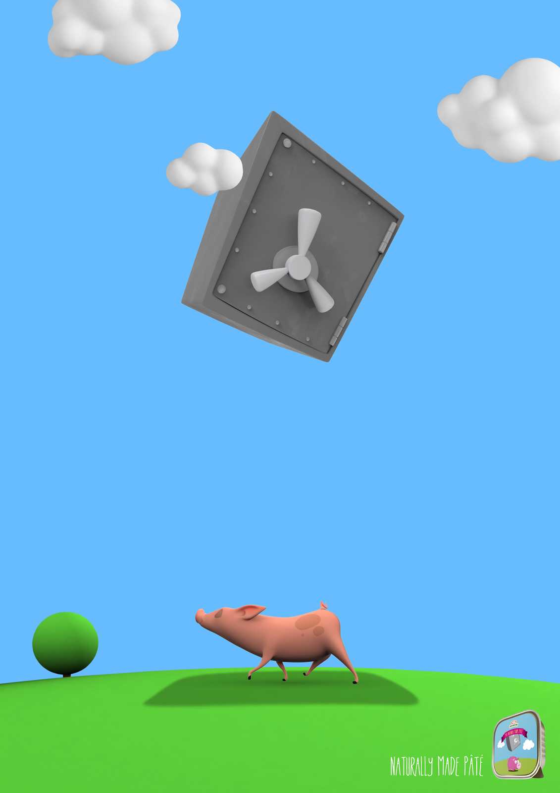Ei heller kan en lykkelig gris bli mer hakka opp og most enn av en fallende safe. Noe som vi alle burde se litt mer opp for. Fallende safer begynner å bli et hverdagsproblem.
