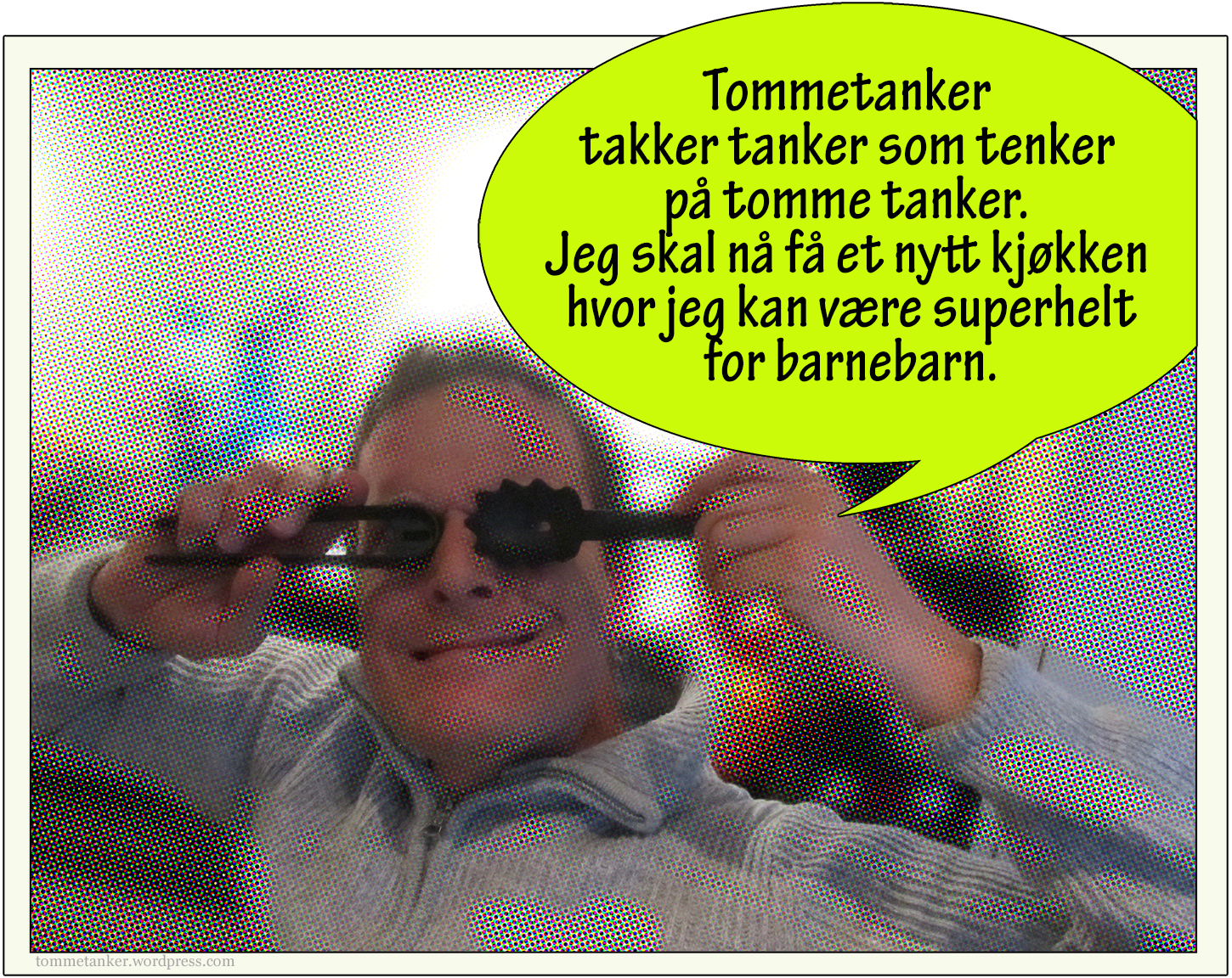 Takk alle sammen som delte og sendte og likte og klemte. Leiligheten min er ikke solgt ennå, men mange har sett den og ordet er spredd. Takk Elin. Takk Ole! Takk Samir. Takk Stine. Takk Mina. Takk Finn. Takk Runar. Takk Ingvild. Takk Janne. Takk Bjørn og takk mange fler. Det ble mange å takke til slutt. Det er godt for en ensom, stille, forsagt noksagt som meg at så mange gjør noe for meg. Jeg blir litt glad i hjertet mitt da. Tommetanker blir varmetanker. Dere deler med meg og for meg og det er godtgodtgodt. Tilbudet om 5000,- i vinnerlønn til den som finner en kjøper står ved lag. Så dukker det opp noen med ønske om en deilighet av en leilighet i din vei, så tips dem. Jeg har lyst til å selge, for jeg skal bygge. Bygge tilbygg til huset til Stian og Supansa og Lucas og Isabella. Og katten deres. Der skal vi bo, vegg i vegg. Gleder meg til nok en gang å være superhlet for barnebarna. Snart nok blir jeg superdust, men enn så lenge er jeg en helt. Gleder meg til første spadetak.