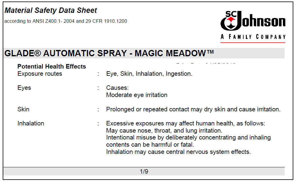 ne smektende odører. Rett i kontakten,- rett i nesa. Det lukter så friskt, det lukter så godt. Desverre kan stoffet ga liv. En dag under flyttinga hos sønnen satt jeg en slik luftfrisker oppå PCn. Den kantet uten at jeg så det og i løpet av natten seg det ut litt av stoffet og lagde en liten dam oppå PCn’s harde lokk. Neste dag så jeg det og skulle tørke vekk. Plasten var etset! Jeg kunne rulle av plasten der stoffet hadde ligget. Luftfrisker med slike egenskaper! Det må jeg si var ekstrabonus. Den kan brukes i stuen som lukt, samt i verkstedet som løsemiddel. Stilig. I et anfall av interesse leste jeg om denne multifunksjonelle dingsen og dets innhold. Hm! Stilig! Farligere ting skal du lete lenge etter. I produkt spesifikasjonen som er på 10 sider, er det meste advarsler og farer knyttet til luftfriskeren. Selv ikke i små doser har jeg lyst på en slik. Ei heller i nærheten av barn eller dyr. Men det er kanskje meg.