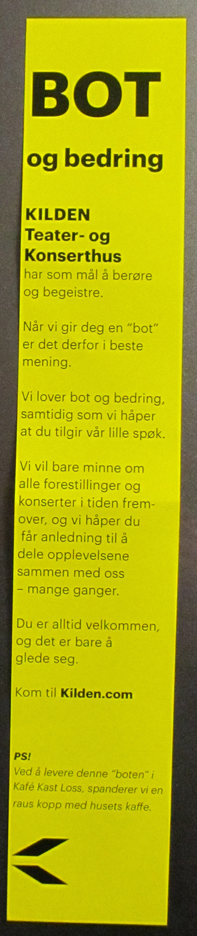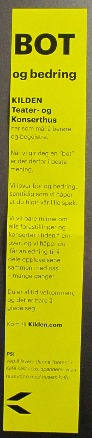 Reklame for Kilden Teater og Konserthus. Kom til oss sier de, – etter å ha skremt og lurt meg.