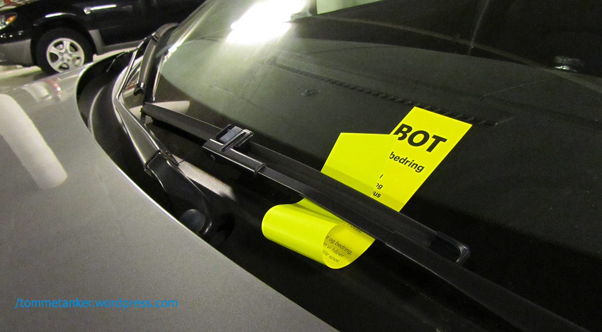 g ut etter en Ultra tur og ser parkeringsbot på bilen.