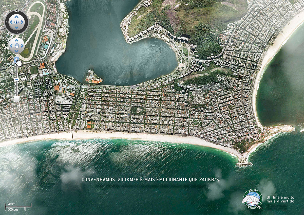 Hill, hill og hill. Reklamebyrået Festo i Brasilia i Brazil har en rasende god ide med veldig god tekst. Art Director Felipe Pimentel og copywriter Hélio Maffia fortjener all ære. Og annonsene for fallskjermhopping overrasker. Det meste er bedre i virkeligheten, og de fikk meg til å smile og bøye meg i støvet. Forlat Google Earth og sett beina på jorda.