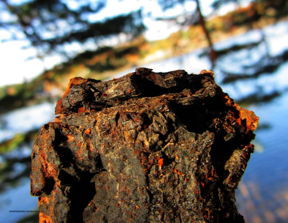 Vi har det på hylla, i boden, i mørket, i kulda. Den trives best slik. Eller egentlig ikke. Den trives vel best på Bjørka hvor jeg fant den, men shit happens. Soppen vår. Den vidunderlig Chaga soppen. Soppen som ser ut som brendt kork og koster 1500,- kr kiloen. Bortsett fra at jeg fant en i skogen. Eller to. Kutt, tørk, kutt, kok, kopp, kos. Den kokes og vannet blir som te. Det er den du koser deg med. Kok noen små biter i en halv time og vips, veien til en antioksidantglasert kropp er i gang.. De frie radikalene holder nok kjeft nå, tenker jeg!