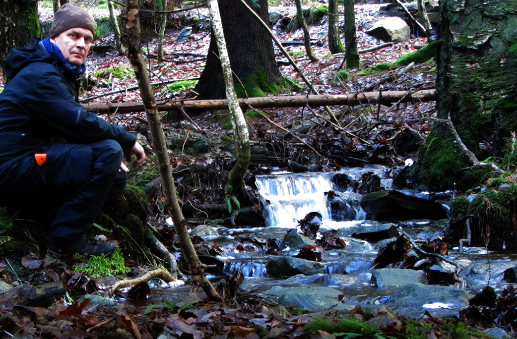 ikke har tatt tak, fortsetter denne lokale helten å samle mat, bygge hytte og felle trær. En gang klarte vi mennesker nesten å utrydde dette dyret. Heldigvis skjerpet vi oss. For det er så fint for mitt hode å sitte ned og se han for seg. Prøve å se livet hans. Det er gøy at han bor her, og tenke på at akkurat nå er han sannsynligvis mektig beverirritert på den dusten av en fyr som sitter bak hytta hans og bare sitter. “Jeg skal snart gå”, sier jeg. Dette er ditt kongedømme.