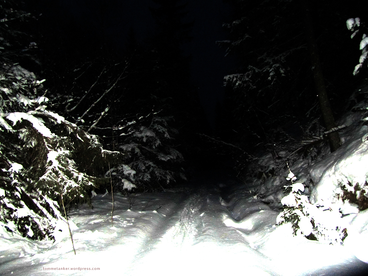Jeg gikk tur i dag. På ski. På nysnø over skare. Inn i skumringen, ut i mørket. Jeg gikk der helt alene på lydløse ski i den myke snøen fra i natt. Helt alene med meg selv. Og de sporene som var, fulgte etter meg. Ingen spor foran. Kun noen få lykkelige harehopp og rådyrsprang hadde satt sine merker i snøen. Når jeg gikk der alene gikk jeg sammen med mange. Jeg tenkte på lørdagen. Alle vennene som overrasket meg til bursdagen var med på turen. Jeg tenkte på kona som startet det hele. Hun var med på turen. Jeg var alene men aldri ensom. Det var godt.
