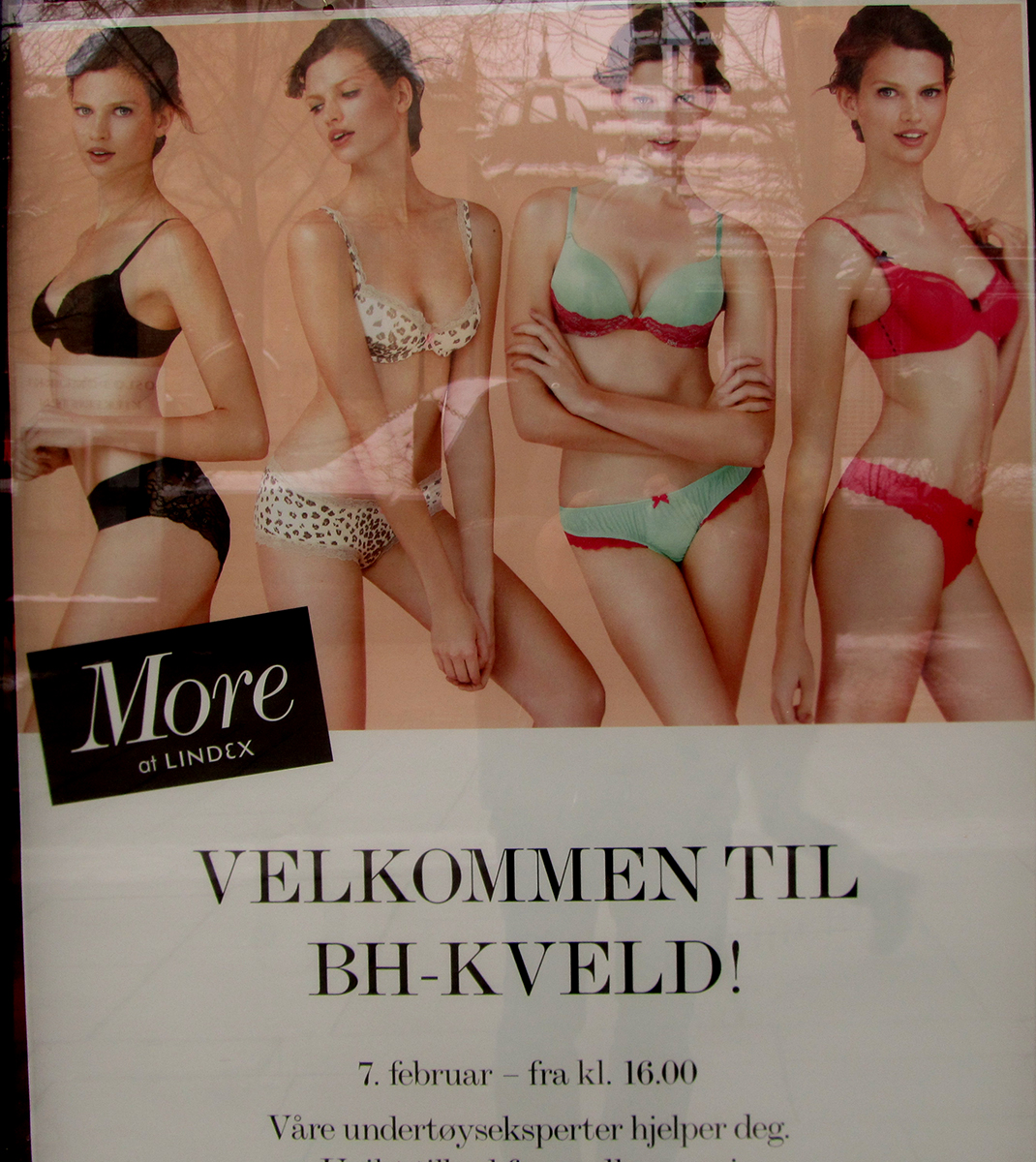 bh_kveld_tommetankerDesverre er det 8. februar i dag. I går var det 7. Den store BH-kvelden i Oslo. Kl. 1600 på Lindex på Karl Johan. Jeg satt desverre  på toget fra Oslo til hjem idet klokka passerte 16.00. Akk! Tidligere på dagen, tuslende i Oslos hovedgate fanget en overraskende plakat mitt årvåkne øye. BH-kveld! Guddd? BH-kveld klokken 1600 hos Lindex. Skikkelig haukøye som fikk øye på den ja. Men kl. 1600 satt jeg altså på toget, så dette gikk jeg tåredryppende glipp av. Jeg har tidligere deltatt på spansk-kvelder, mekke-kvelder, tupperware-kvelder og design-kvelder. Til og med en og annen Herbalife kveld. Men aldri på en BH-kveld. Og det var noe med den plakaten som fristet. Var det rett og slett firlingene ikledd lekkert kniplingsbasert undertøy, eller var det spenningen i å muligens oppleve en aften med kvinner i en tilstand av puppepanikkangst. Egentlig glad jeg ikke er kvinne utenpå. Mange har fastslått at jeg er en kvinne på innsiden, men enn så lenge ikke utenpå. Hadde jeg meldt meg på hadde jeg med stor sannsynlighet blitt lagt i bakken av en bitteliten kvinnelig Securitasvakt og brakt ydmyket og innesluttet til arresten. Uansett er det vel best å overlate slike kvelder til min skitne fantasi. Virkeligheten er ikke alltid det den selger seg som.