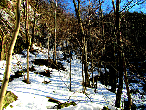 er det merka løype rett oppover. Bratt som bare det, og ikke så barnevognsfamilievennlig løype. Går du hele lia kommer du opp til himmelen. Høyt hevet over Otra oppe på Skråstadheia. Her ligger også Oddersjå, hvor du ser magisk langt. Flott utsikt både sommer og vinter. Dag og natt. Men gidder du ikke å gå så langt kan du stoppe etter bare 80-90 meter fra parkeringsplassen. Gå til høyre over noen digre steiner og gamle trær. Inni der ser du en massiv stein, 5-6 meter i diameter. Under denne og rundt denne har gutter lekt i alle tider. Huler og sprekker og åpninger og bekker.