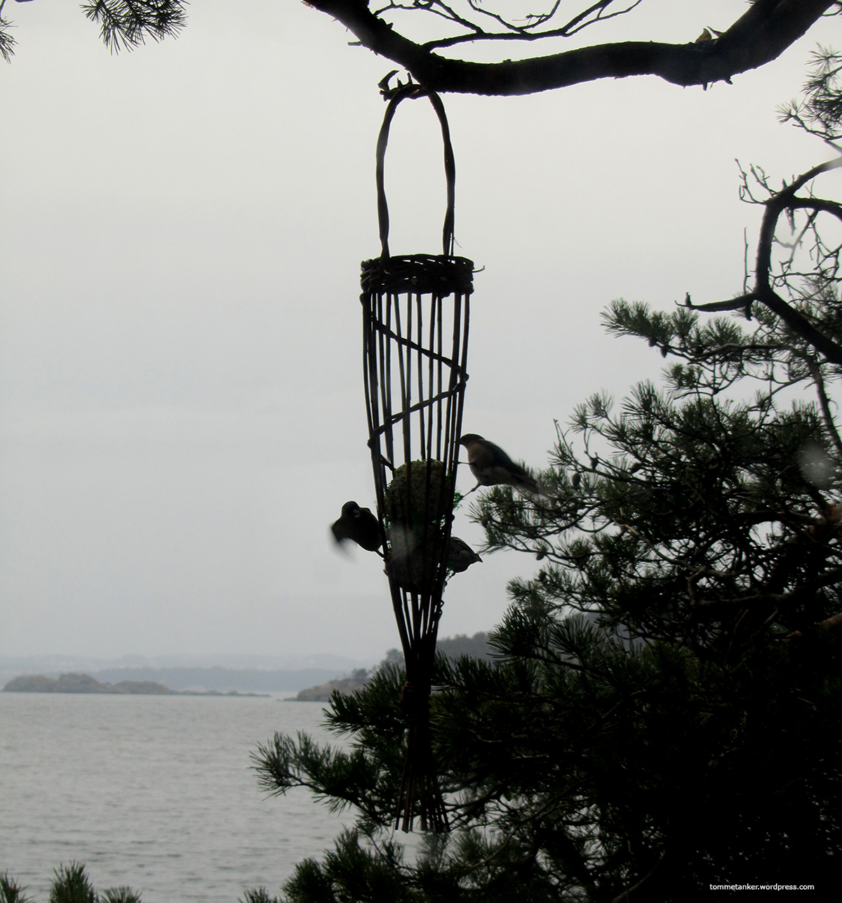 Det gjør ikke Ole. De er gode venner og en dag kom min kone hjem med en kurv. En matkurv for de små fuglene. Mikyung hadde kjøpt den til meg for hun vet jeg er glad i alt som er ute. Takk Mikyung. Jeg sitter her en forblåst lørdagsmorgen og ser på kurven din, som nå er min. Bittesmå fugler trosser vind og regn og henter seg frokost. Små gleder en lørdagsmorgen. Både for dem og for meg.