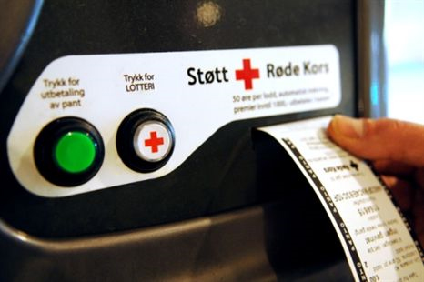 Jeg gir med glede. Jeg gir til tiggere og til SOS barenbyer. Og nå altså ble jeg lurt til å støtte Røde Kors. 1 kr av gangen. Bip. 1 krone til,- Bip. Boksene glir inn i panteautomaten og kronene går til Røde Kors. Ja. De vet hva de skal spille på. Disse fandens ideelle organisasjonene. Utspekulerte sutrekampanjer og medfølelsespornografiske innspill. Og nå dette. Sleipt og smart samtidig. De frister med øl. Bokser og flasker. Og jeg lar meg friste. Jeg kjøper øl, drikker, og panter. Om igjen og om igjen. For hver tomme boks jeg putter i automaten hjelper jeg noen som Røde Kors hjelper. Det føles bra. Jeg har prøvd å