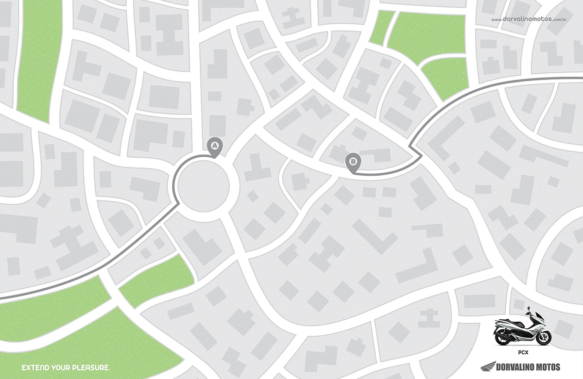 For de som liker tohjulingenes gleder er denne selvforklarende. God ide, enkelt og elegant gjennomført. Den treffer rett i vomma til de som digger fremkomstmiddelet. Selv bruker jeg heller buss eller bein men,- Hill, hill til Reklamebyrået 9mm Propaganda i Florianópolis i Brazil. Art director og illustratør Alexandre Guedes hylles herved.