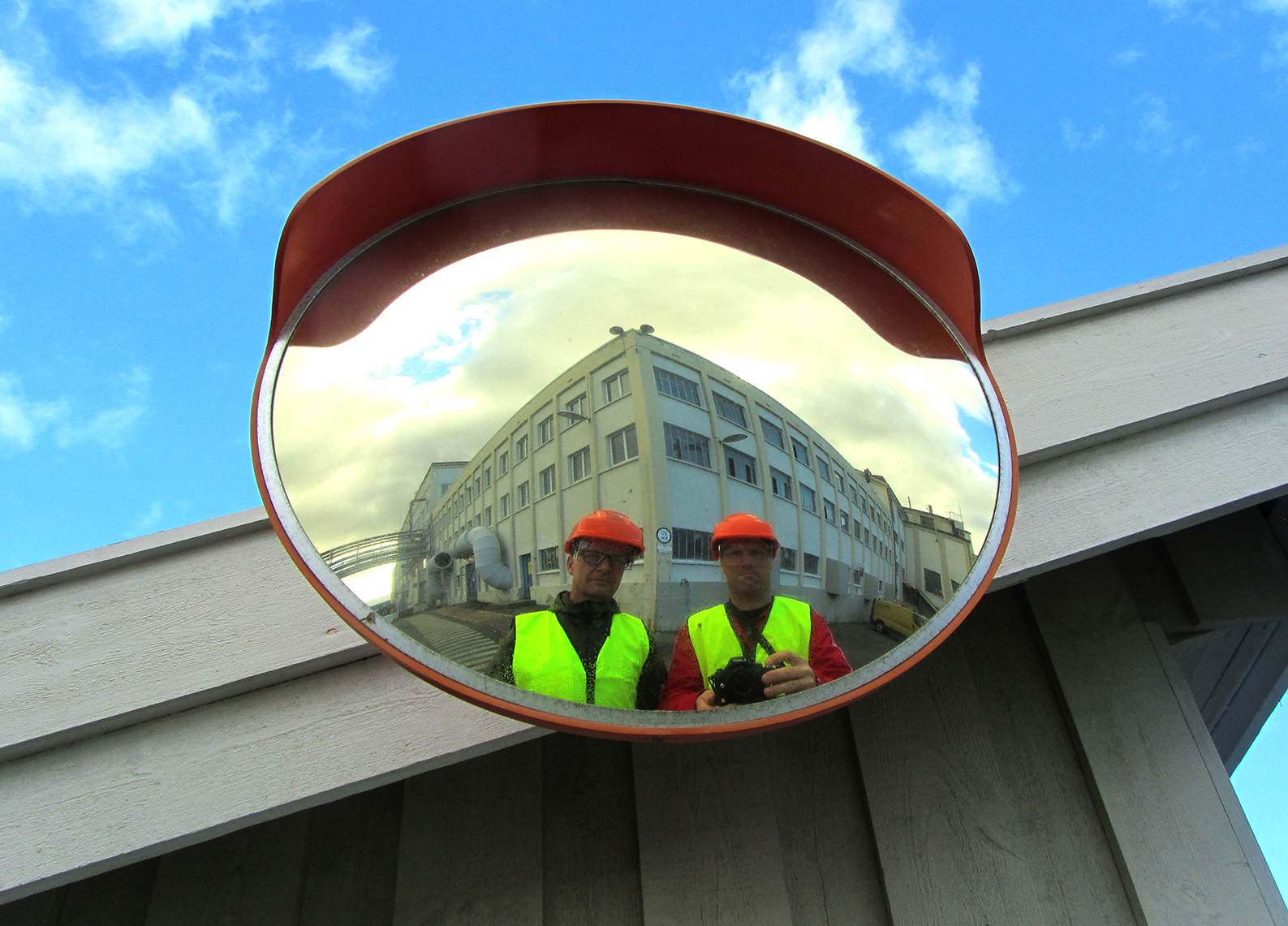 Tommetanker på sikker grunn. Legen min sier jeg bør gå med gul vest og hjelm hele døgnet. Jeg utgjør ingen fare for min egen usikkerhet, men andre kan kanskje komme i skade for å sikre et oppgjør. Og det er utgjort. En jobbtur ventet. Så ikledd hjelm, vernesko, godt mot, nysgjerrighet, vernebriller og gul vest var jeg på besøk i de runde speils land,- Nikkelverket. Fabrikken som var en giftpøl i min oppvekst er nå en mønstermiljøbedrift. En fantastisk spennende rusletur, inn og ut av dører. Korridorer og trapper og rullebånd. Etter ca. 2 minutter var jeg desorientert. Lyder og lukter imponerte. Gjennomtrengende bråkete gamle fabrikkhaller og stille hypermoderne fasiliteter. Alt stengt inne i gamle mangekantede bygg adskilt av smale greske gater. Kul plass og hyggelige folk. Eksperter på sikkerhet og vern på arbeidsplassen. Sikkerhets-ting og skilt over alt. Stilig. Hill, hill til Nikkelverket.