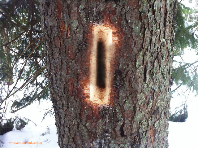 Jeg tusler mye i skogen og nyter både dens ro og dens villskap. Av og til treffer jeg på en av skogens innbyggere også. Grevling, Rådyr og Elg. Svaner og hegrer og meiser og spurver. En og annen dundrende hakkespett møter jeg også på. Men her en dag så jeg noe helt spesielt. Jeg fant rugeplassen til den meget lands-sky RødSpetta. Som andre spetter lager den hull i trærne og legger gjerne eggene sine der. Det er en sjelden rase med et mystisk levesett. Veldig glad i det våre element.