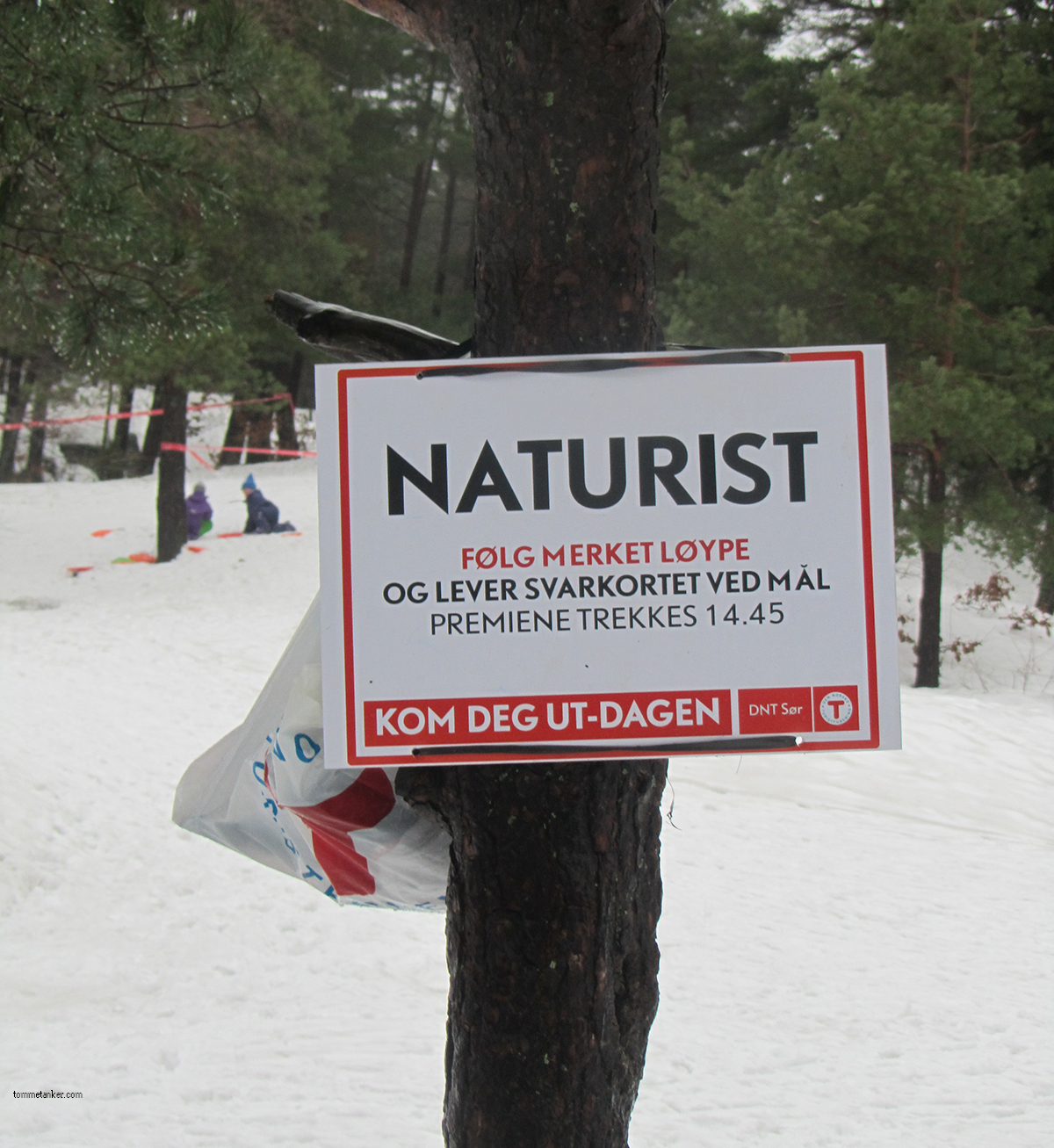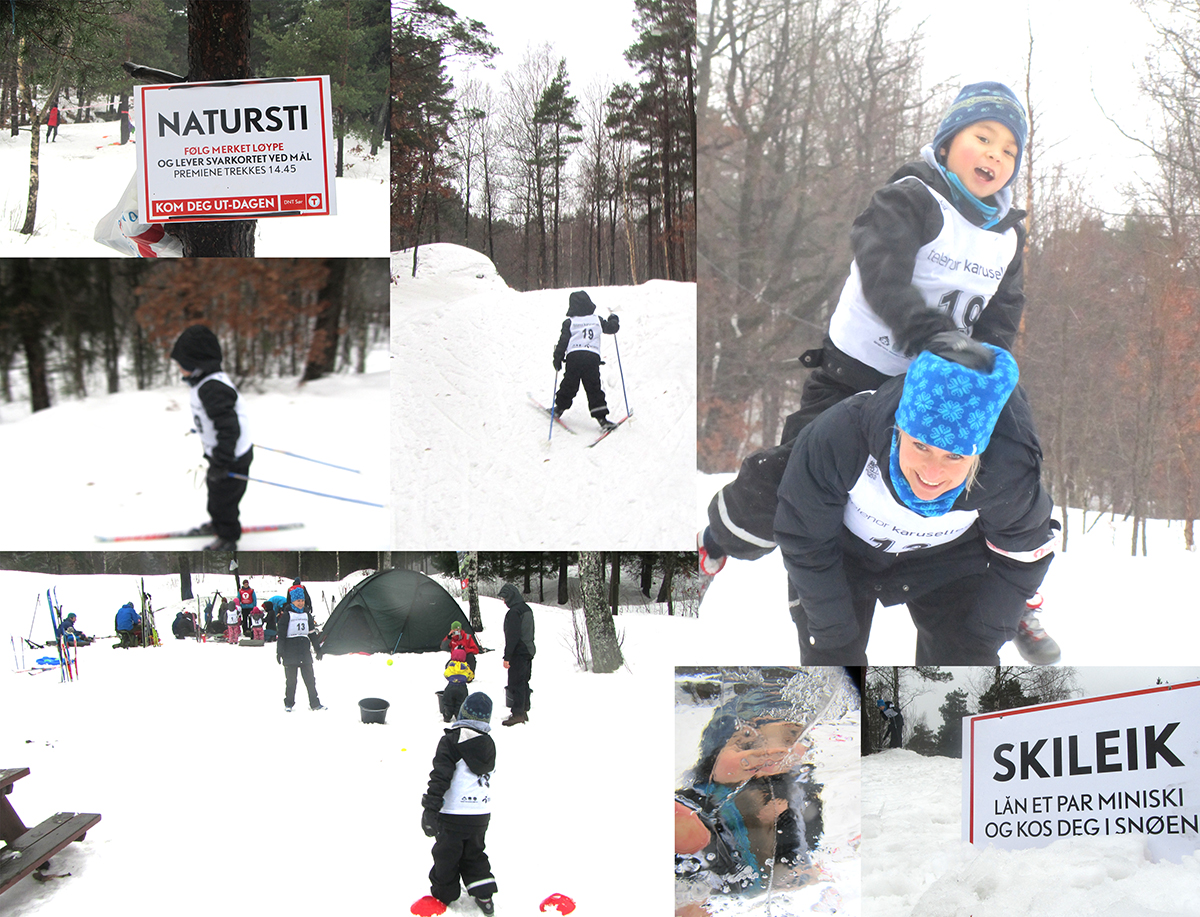 I går arrangerte Den Norske Turistforening, “Kom deg ut!” dagen over hele landet. Tusenvis av arrangementer i alle avkroker skulle lokke innesitterne til uteaktivitet. i Kristiansand ble vi lokket til Jegersberg hvor et lass med aktiviteter stod klar for barn i alle aldre. Eneste problem var at latsabbinnesitterne gadd ikke å gå ut. Kanskje de neste år skal legge inn en stavefeil i skiltingen slik at nysgjerrigheten og andre ting blir pirret. Vi var ikke mange som møtte opp, men vi hadde det kjempeflott. Skirenn. Skiskytterrenn. Hopprenn og kulekjøring. Alt ble forsøkt. Få folk skaper lite kø, så vi hadde det moro heile tida. Jeg kan oppfordre innesitterne til å bli sittende også neste gang. Det blir mer moro på oss.