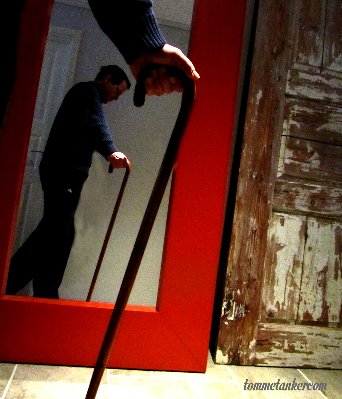 Gudd å glade folk må være i meg. Kjært barn har mange navn,- sier et gammelt ordtak. Tommeltott, tommelom, TTTTT (Teite, tullingen, taperen, tosken Tomm), TomPengPung, Dust og Twat. Og nå altså et helt nytt ett. Tommestokk. En søndag aften i gode venners fotballtrenings-lag resulterte i et nytt kallenavn. I ett innbitt blodkutt raid mot mål og sikker scoringsposisjon tok jeg en piruett for å avlede motspilleren. I virkeligheten avleddet jeg meg selv. Nesten hele kroppen spant rundt sin egen akse. Kun venstre foten stod igjen. I et øyeblikks overtent iver haddde jeg glemt at venstre knee ikke var utstyrt med kuleledd. Det resulterte i et forvridd kne, jævla vondt og hylende latter fra mine gode medspillere. Et par dager etterpå er jeg hjemme. Hinkepinker rundt i heimen og har fått meg stokk. Endelig ordentlig bestefar. Hjelpemiddelsentralen står på speeddial og søknad er sent til Strømmetunet om permanent oppholdstillatelse. Så nå heter jeg Tommestokk. Men mine med- og motspillere på fotballbanen har fortsatt noe å frykte,- – – – høyrebeinet.