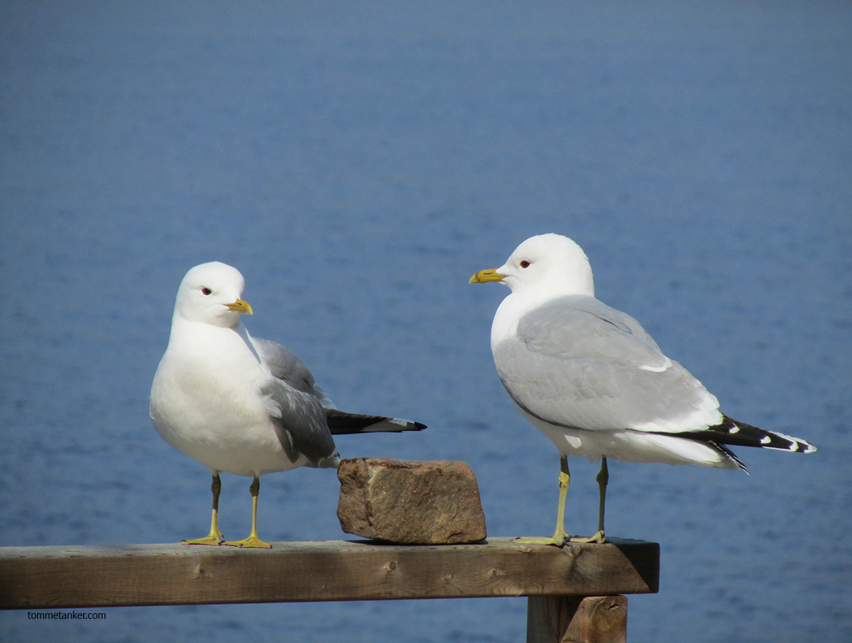 He, he. Dagfinn. Du har så rett. Du kjenner dine måker. – Endelig er måkene tilbake tenkte jeg i går. Jeg var på hytta og bygde opp igjen et halvtak som stormen 4. desember bestemte seg for å overta. Og mens jeg jeg hamret og bannet og prumpet landet det noen kjenninger på rekkverket like ved,- Hædi og Bædi. 2 fiskemåker navngitt av barnebarnet. De gjør dansker av seg i vinterhalvåret, – det er jo deilig å være norsk i Danmark. Selv for måker. Og der satt de og kikka gjenkjennende på meg og. “Hei!”, sa jeg, “lenge siden sist.” Og mer skel det ikke til med gamle, gode venner. Praten var i gang. Jeg førte en samtale med dem under arbeidets gang. Vi delte en tørr brødskive og de nikket ettertenksomt etter hvert som jeg brettet ut livet mitt for dem. Jeg fant forståelse og anerkjennelse. Vi var rett og slett på bølgelengde. Halvtaket ble ferdig i lys fra ei stålampe. Jeg takket for laget og gikk hjem. Akkurat hva vi snakket om er mellom dem og meg.