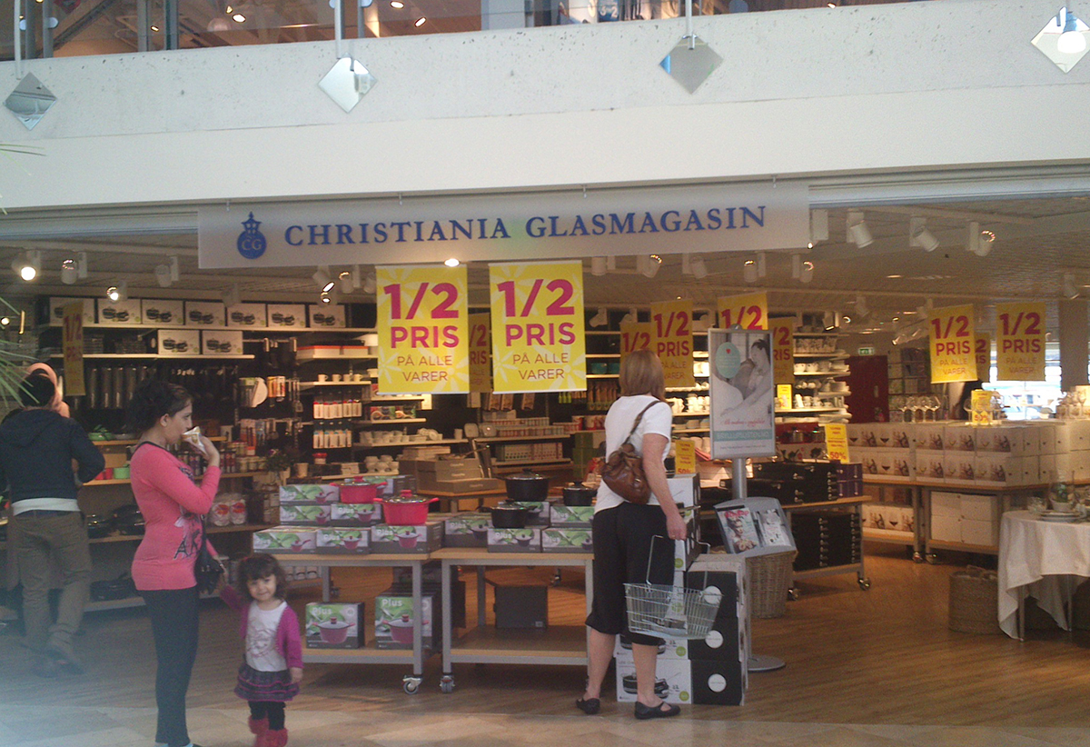 Alt på tilbud! Halv pris på hele butikken! Halv butikk til hele prisen! Eller full butikk til hel pris! Eller alt til halvparten av halvfull pris! Jeg handler på Sørlandssenteret ganske ofte. Inne i den gamle delen ligger en filial av Christiania Glasmagasin. Fin butikk med kjøkkenting. over tid har det forundret meg hvordan de prissetter varene. Jeg tror jeg aldri har sett noe til full pris i den butikken. Hver gang jeg går forbi så er alt på tilbud. Alltid. Vi tømmer butikken! Vi fyller butikken! Salg! Neste gang skal jeg forlange å betale full pris.