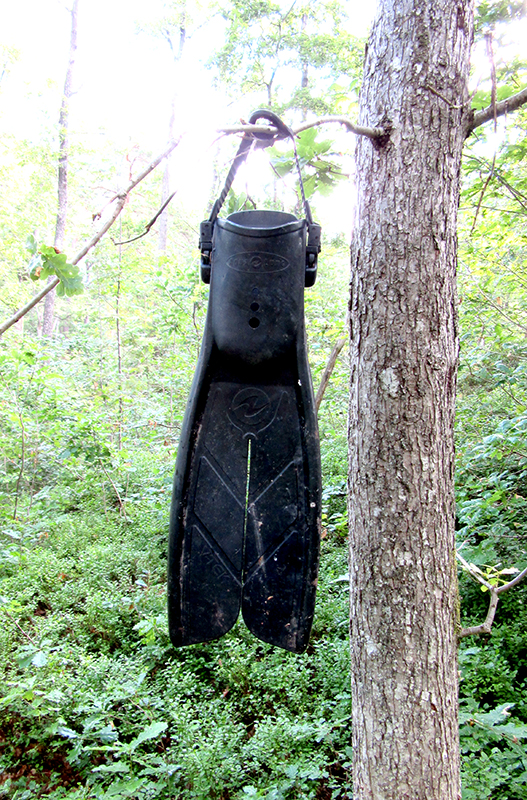 Stemningen i serien er absurd i likhet med sære karakterer og hendelser. Og i går føyk tomme tanker inn i Twin Peaks verdenen. På en sti i skogen, utenfor allfarvei. Blant inntørka blåbær og tørste eiketrær hang den. I en tilstand av total ubesluttsomhet stod jeg en stund stille. Usikker på hva jeg burde foreta meg. . . . . . . . . . . . . . . . Min vanligvis livlige fantasi gav meg ingenting. Tomme tanker var helt tomme her inne i skogen stirrende på en svømmefot. Fire,- Swim With me!