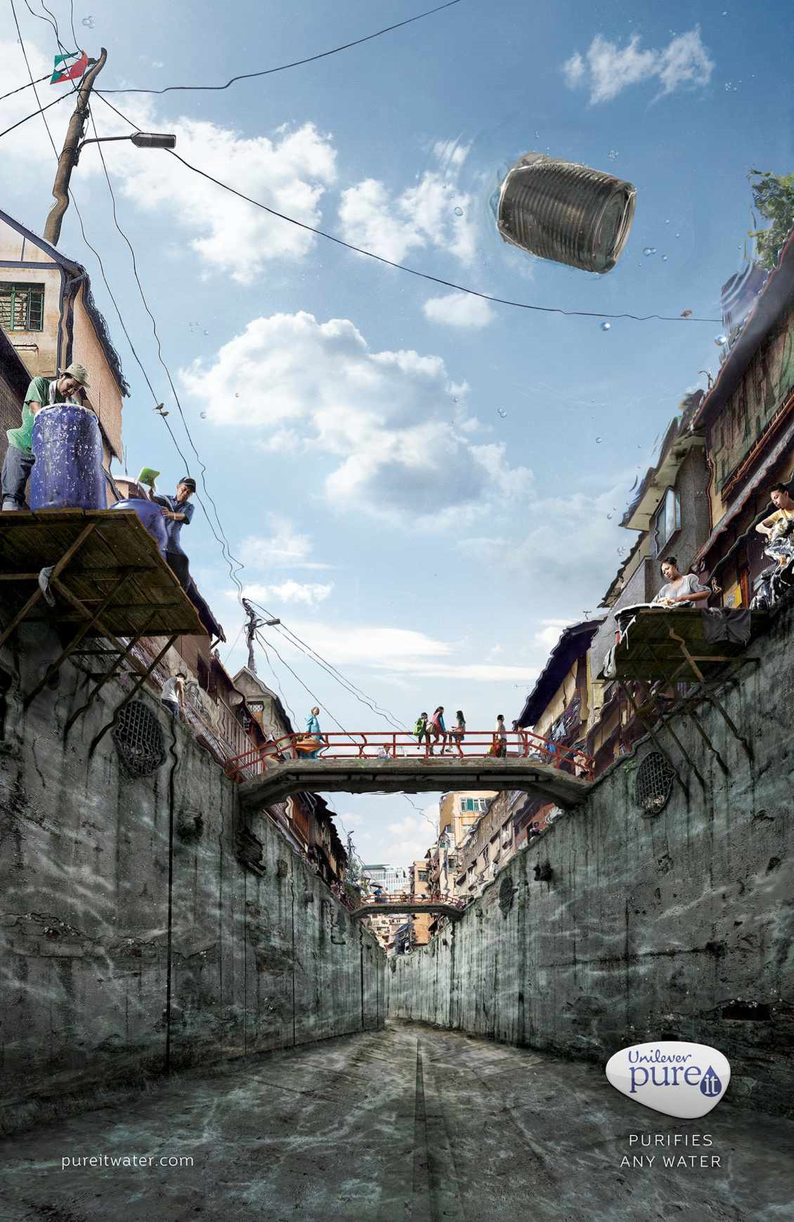 Det ok noen sekunder før jeg skjønte denne annonsen. Det er jo i utgangspunktet ikke bra, men allikevel,- hill, hill. En annonse for et middel som gjør vann rent. Det imponerende er at denne sære ideen har blitt gjennomført så helhetlig. Det er mesterlig foto og fotomanipulasjon. Ære til reklamebyrået LOWE i Jakarta i Indonesia. Art Director Rizky Wisno og Vinsensius Seno har ideen og magikerene i Tanda- Seru Detailed Imaging har laget bildet.