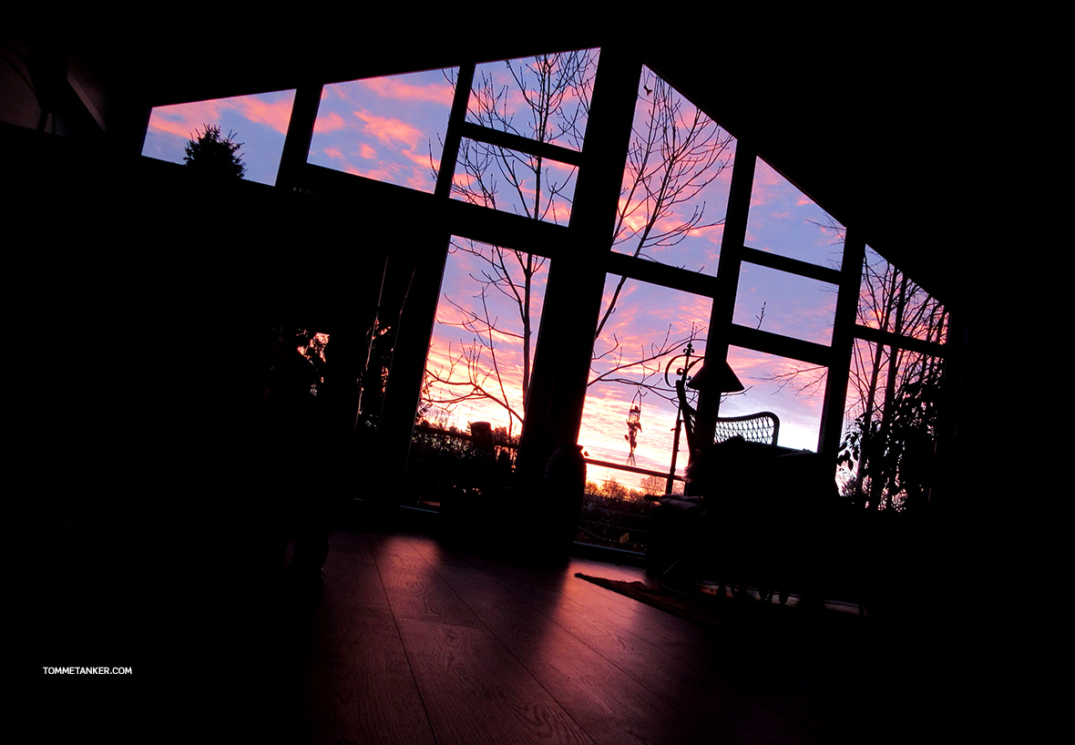 meisene som allerede har vært våkne en stund. Jeg sitter bare og ser. Jeg går inn i mine tomme tanker og bare er der. Synsinntrykket omhyller meg, blir en del av meg, og jeg bare er. Følelsen av ingenting fyller meg med mye. Ubevisste opplevelser av ro. Og selv om min kone er på reise er jeg med henne. Og selv om hun ikke er her, så sitter hun ved siden av meg. Gode tomme tanker. Ikke alle tør være alene med seg selv. Eller klarer det. Men det anbefales og det kan øves på. Det er en fin måte å våkne til en ny dag på.