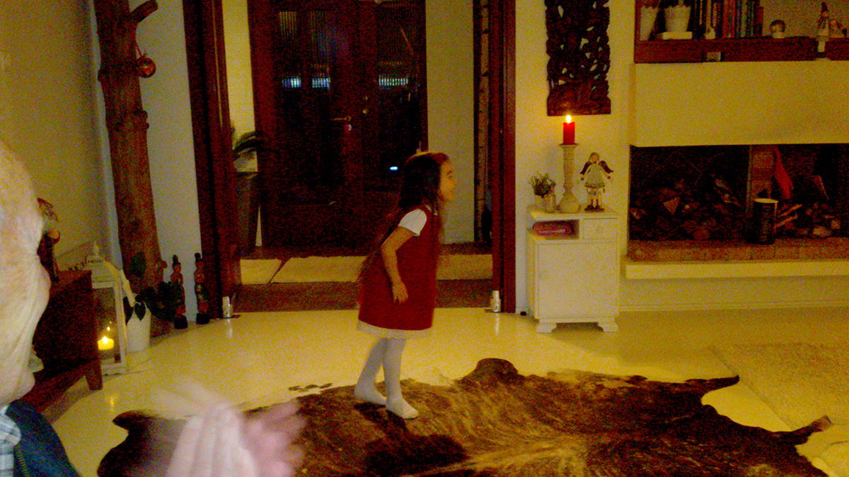 kirker og forsamligslokaler land og strand rundt hadde våre to små barnebarn satt opp en sang og danseoppvisning uten sang. I det en myndig stemme fra en 7 åring ved tangentene brølte “Start NÅ!”,- satte lillesøster i gang med sangen og dansen uten sangen. Hun levde seg inn i dansen og glemte sangen og snurret og snurret. Hele tre dansenumre med over 234 snurringer fikk vi se. Samme tretangenstmusikken steg ut av nabopianorommet men ulik snurring utspant seg på teppet foran publikum. Og både foreldre, besteforeldre, oldeforeldre og onkel og tante gav de neiebukkende artistene en rungende applaus. Vi fikk sågar et ekstranummer. Samme musikk, men ulik snurring. Et og annet hopp var vevd inn i dansen.