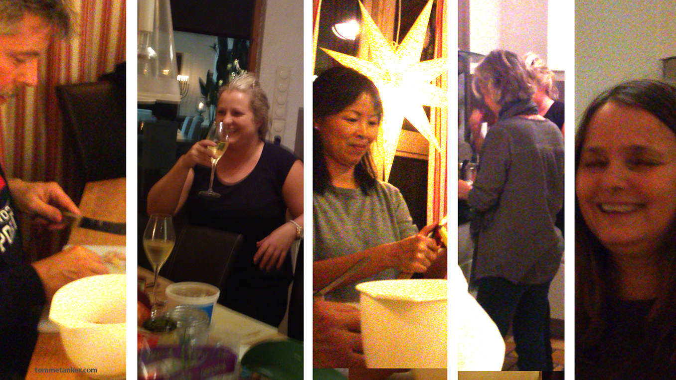 På plass lå koreansk-skrelte epler, Alan-kutta sildebiter, Tomms utsøkte løkskiver, Marits gaffeloppfiskede kryddersild og Mayas finsnitta dill. Det hele i samsvar med Siv sin utsøkte røreteknikk og teskjetuppsmakende tunge. Resultatet endte i Maritstappa glass og masse kos. Sild laget på kjærlighet og hygge. Sild som smaker av jul selv uten å spise den.