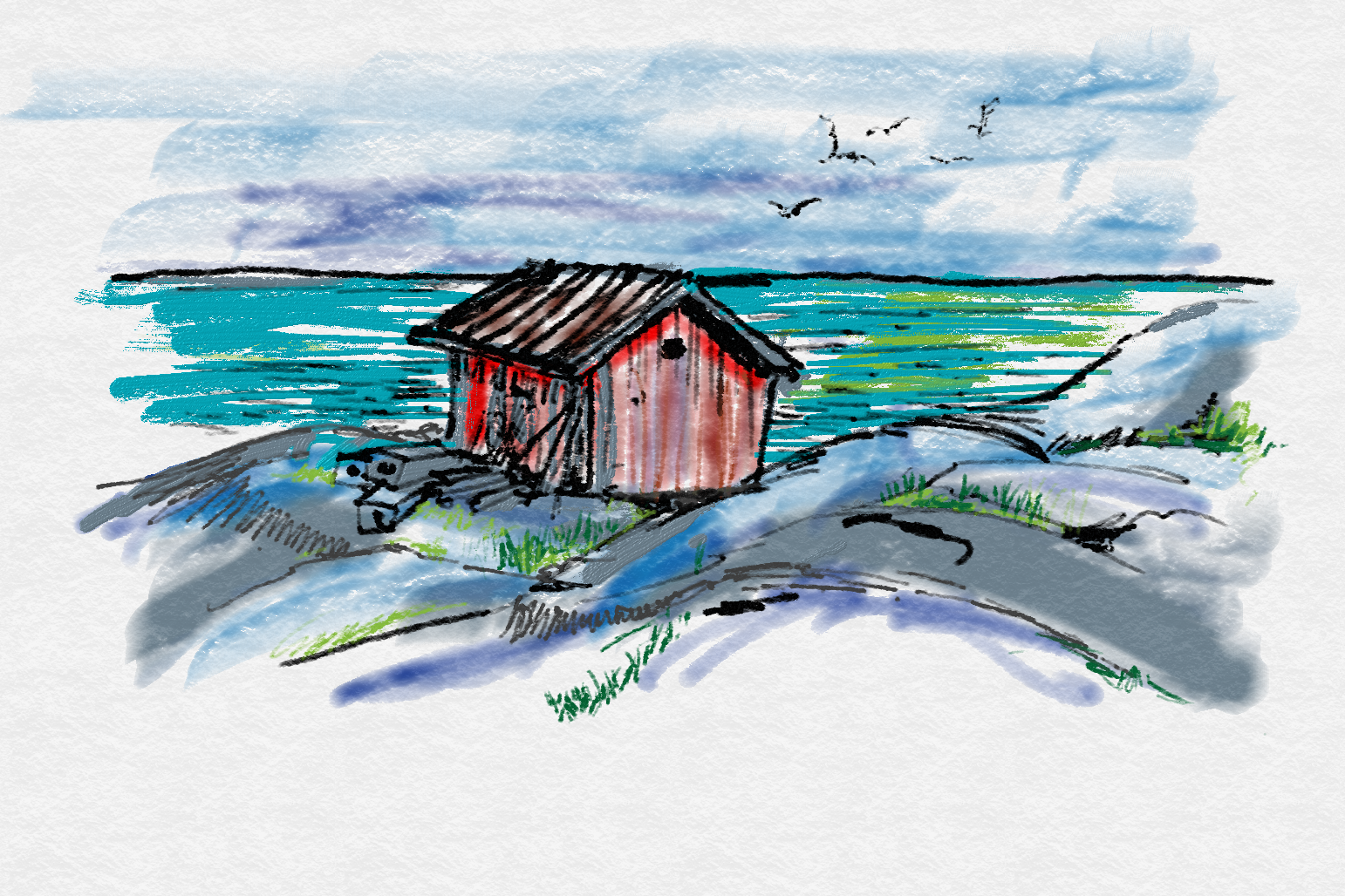 Jeg sitter fortsatt på toget. Utsikten forsvant når mørket kom. Det var da jeg lagde min egen utsikt. Et nytt nettbrett; Surface Pro, ble utforsket. Og der hadde de jammen meg et digitalt akvarellskrin med tilhørende akvarellblokk. Ikke akkurat som det analoge, men du verden så stilig måte å tilbringe den siste halvtimen på toget. Som du ser så gleder jeg meg til sommeren.