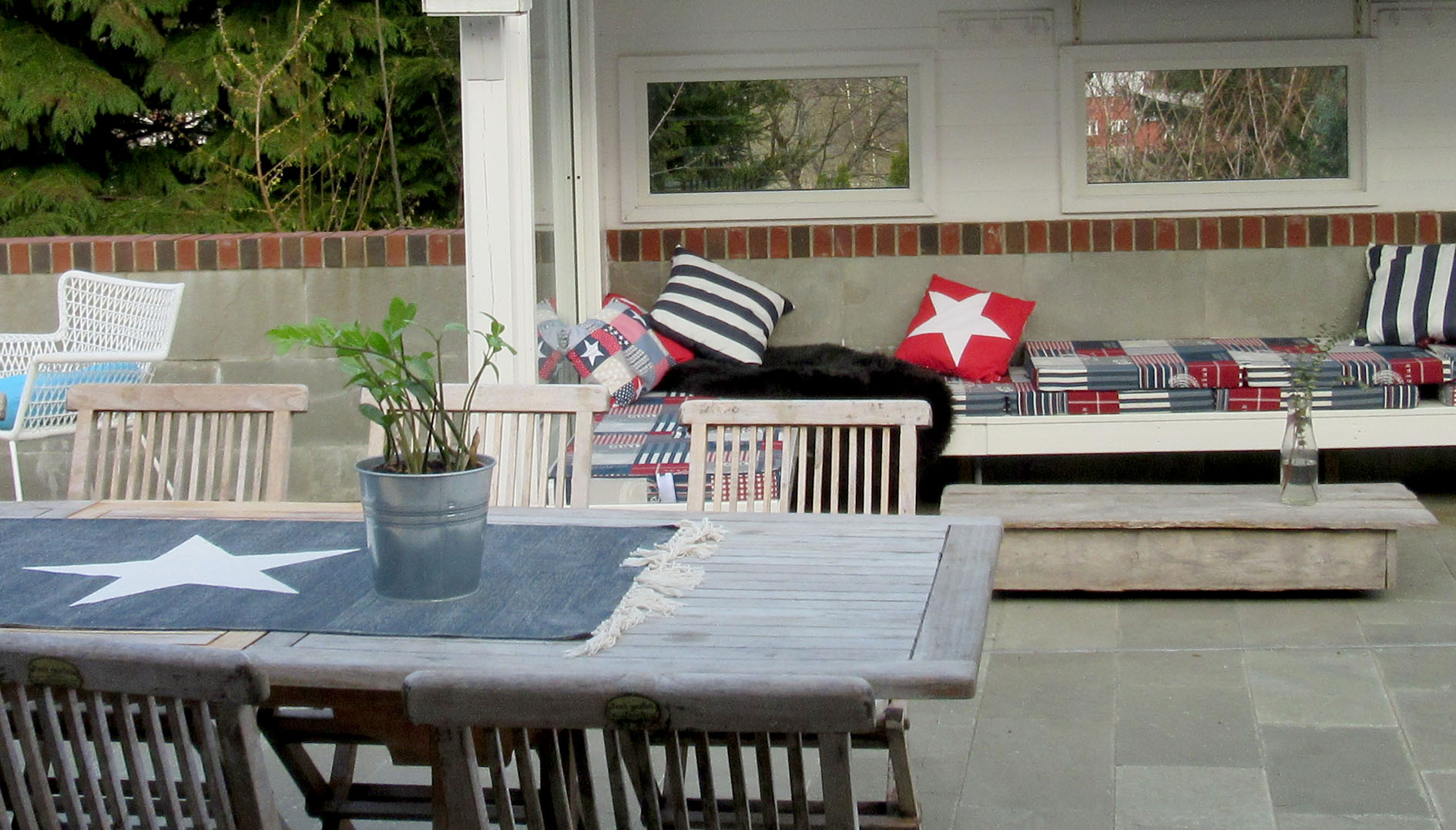 Og fotografen smilte. Han var vandt til at folk blandet seg inn i jobben hans. Men han var ikke vandt til Maya. At de har et slikt blikk for form og farge som Maya har. Han møtte et naturtalent. Hun kunne fint vært proff interiørkonsulent, stylist, kunstner. Rom for rom tok de for seg. Og jeg løftet benker på tvers og tepper på langs. Uten at jeg helst skjønte vitsen. “Er det ikke det samme hvordan teppet ligger?”, spurte jeg indignert etter en timinutters teppevridningsseanse. Gudd! Blikkene jeg fikk fra Maya og fotografen etterlot lite til fantasien. Så jeg fortsatte å flytte vaser og krukker og lykter og tepper. Og jeg skal innrømme, beklageligvis, at de hadde rett og jeg hadde dødelig feil.. Når jeg så resultatet av hva de gjorde så ble det så fint.
